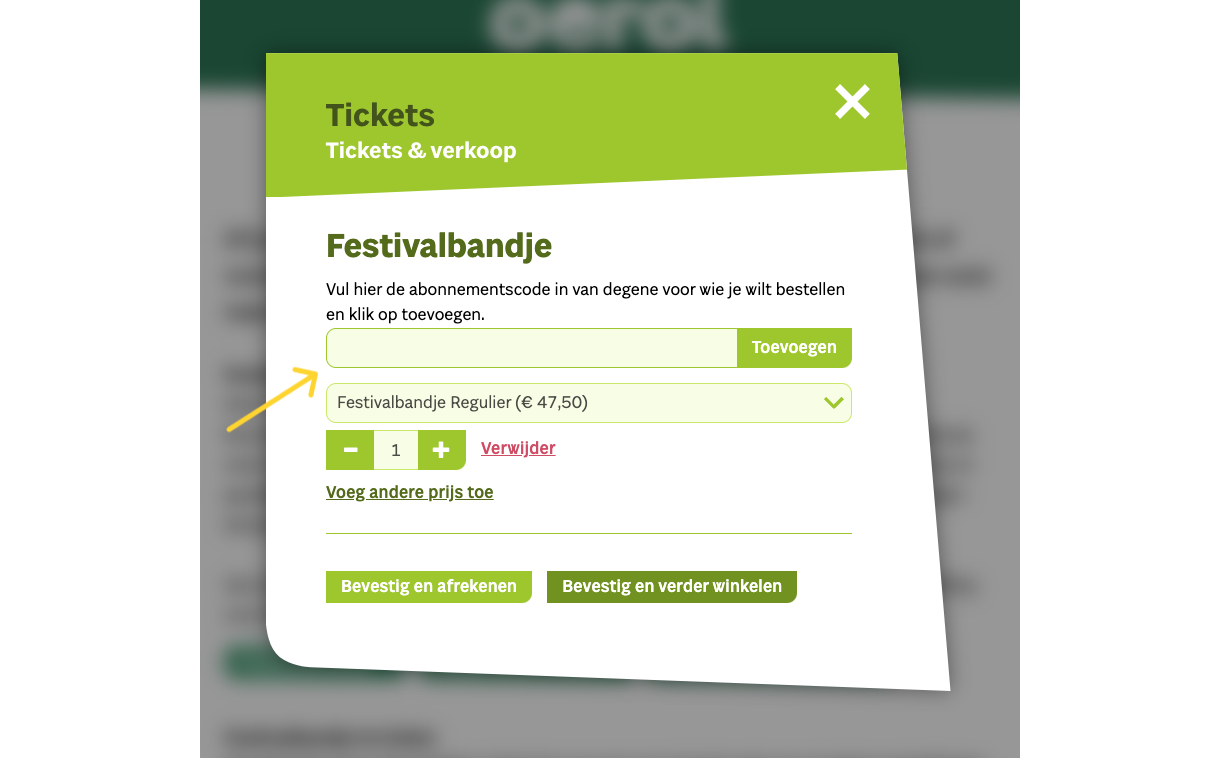 Let op: je hebt de abonnementscode niet nodig als je alleen tickets voor jezelf besteld.