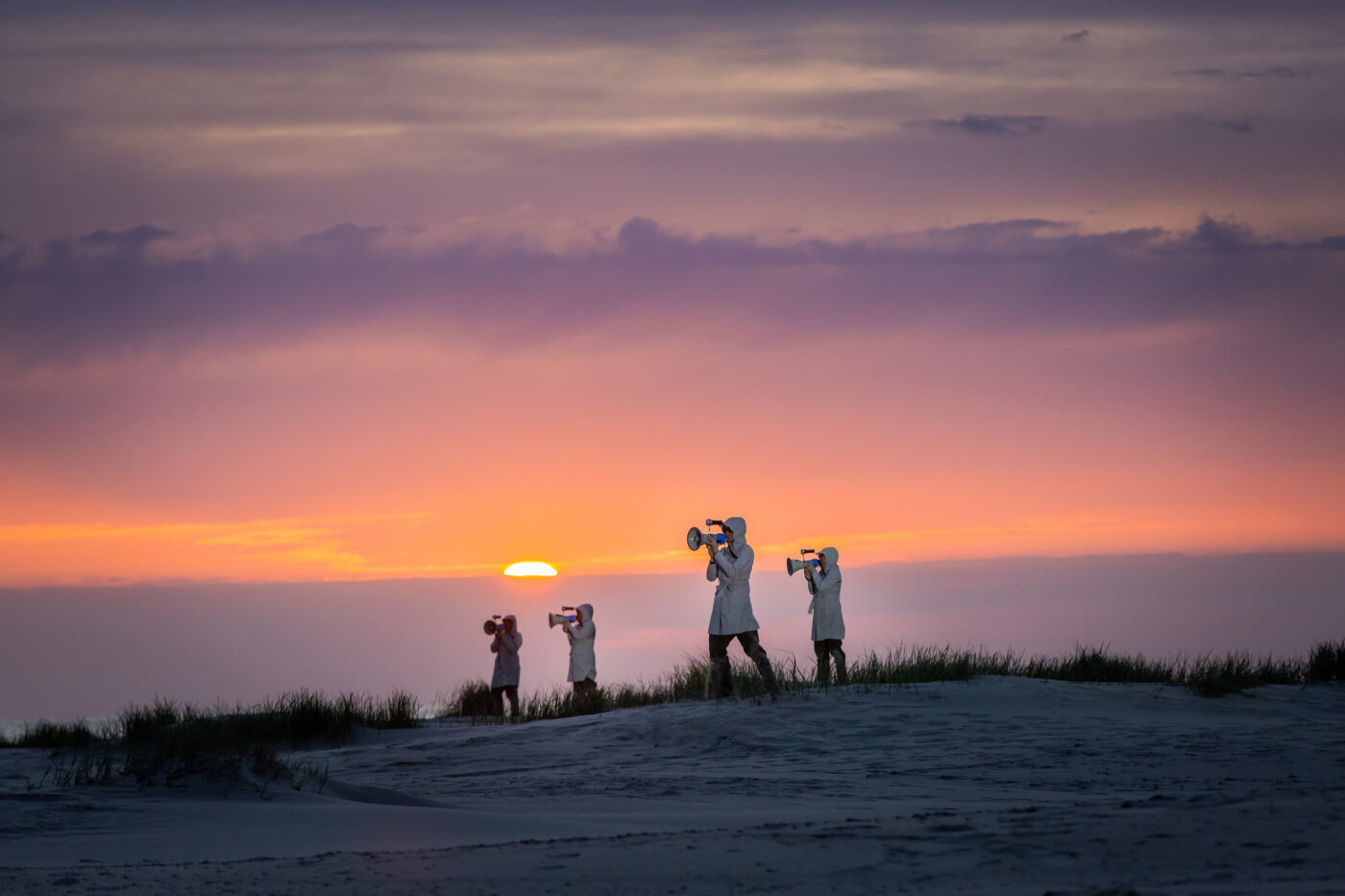 ‘Dat zijn soms best pittige gesprekken’, vervolgt Sanne. ‘Dat kan ik me voorstellen’, antwoord ik. ‘Als ik een monoloog zou schrijven over de Brandaris, wil ik die ook het liefst boven op de Brandaris spelen!’ grap ik. Sanne lacht. ‘Ja, wij willen ook het beste voor elke voorstelling. Tegelijkertijd houden we rekening met het grotere geheel. Zo is de spreiding van speellocaties niet alleen nodig om geluidsoverlast te voorkomen, maar vooral ook omdat we het hele eiland bij het festival willen betrekken. Oerol betekent tenslotte “overal”! Ook is de natuur een belangrijke factor. We blijven altijd in gesprek met Staatsbosbeheer, wat heel fijn is.’ ‘Over natuur gesproken,’ voeg ik toe, ‘het zou super zijn als het dit jaar niet zou regenen.’ Sanne zucht.