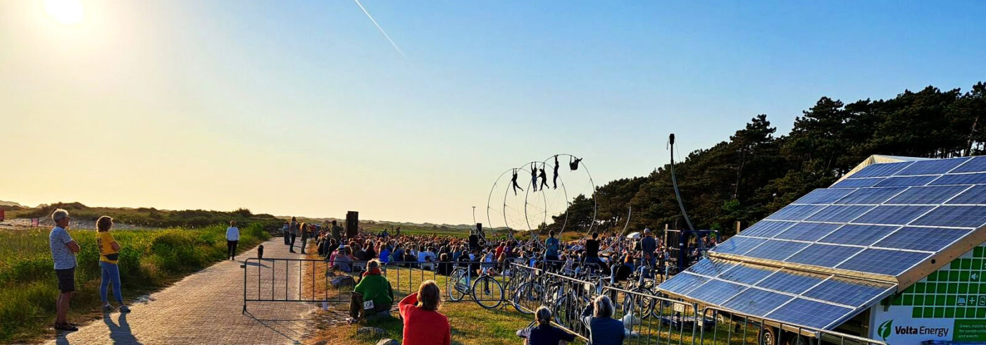 Oerol Festival vindt gedeeltelijk plaats in en rondom Natura 2000-gebieden op Terschelling. Dit betekent dat we niet alleen vanuit onze eigen intrinsieke motivatie te werk gaan. Het kan je ook niet ontgaan zijn dat we de afgelopen jaren in Nederland te maken hebben met steeds meer regelgeving omtrent de uitstoot van CO2, fijnstof en stikstof. Dit heeft allemaal gevolgen voor Oerol, vandaar dat er nu een lang document over de stroomvoorziening voor je ligt. Voor Oerol 2025 is het uitgangspunt, net als in de afgelopen jaren, dat we op geen enkele locatie binnen Natura 2000 gebied nog traditionele diesel aggregaten inzetten, dit is ook niet toegestaan binnen onze vergunning Wet Natuurbescherming (i.v.m. stikstofuitstoot). Ook voor locaties die buiten Natura 2000 gebied liggen moeten we zo min mogelijk werken met aggregaten.